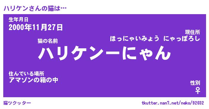 | ファンタジー風あだ名 | 『ハリフェル』『エターナルハリケンー』 |