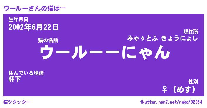 | 2回繰り返すあだ名 | 『ウーウー』『ウウーー』『うるうる』 |
