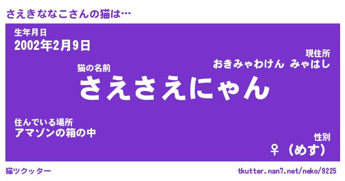 | ヒーロー風カッコイイあだ名 | 『スーパーサエキナナコ』『魔戒騎士サエ』 |