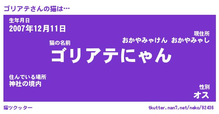 | 意味不明あだ名 | 『ペロリンゴリアテ』『永久保存ゴリアテ』 |