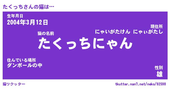 | ポケモン風あだ名 | 『タクチュウ』『タクッダネ』 |