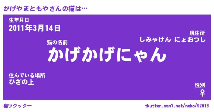 | 2回繰り返すあだ名 | 『かげかげ』『かかげげ』『いらいら』 |
