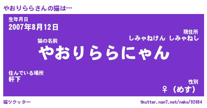 | 生年月日? …「くろねこ」 | 8月01日 10:16 |