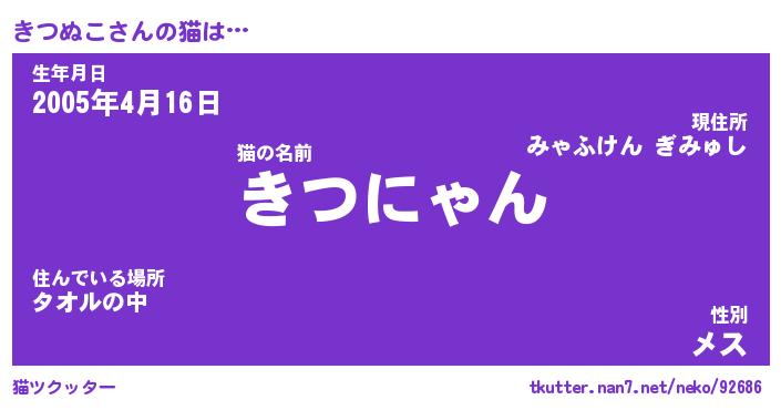 | ヒーロー風カッコイイあだ名 | 『スーパーキツヌコ』『幻影騎士キツ』 |