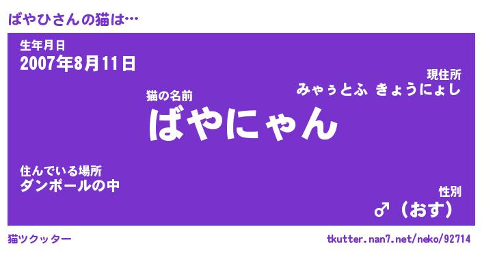 | ポケモン風あだ名 | 『バヤチュウ』『バヤヒダネ』 |