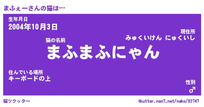 | ツイッター | まふぇーさんのツイッターID『dendenmushi_idle』 |