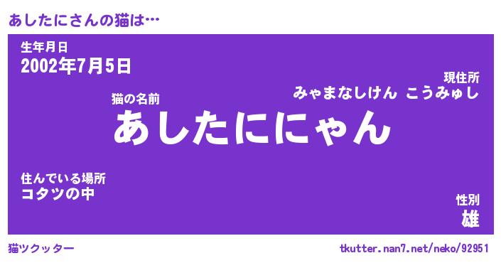| 意味不明あだ名 | 『ペロリンあしたに』『永久保存あしたに』 |