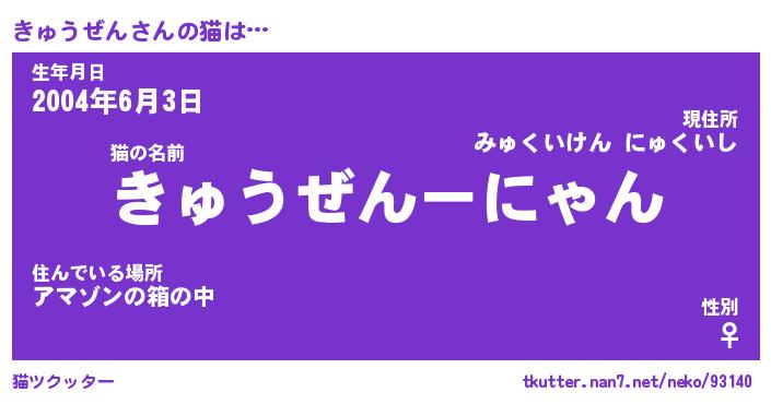 | ファンタジー風あだ名 | 『キュフェル』『エターナルキュウゼンー』 |