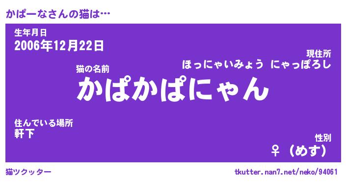 | ポケモン風あだ名 | 『カパチュウ』『カパーダネ』 |
