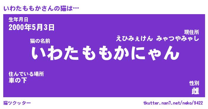 | 欧米人風あだ名 | 『マイケルいわたももか』 |
