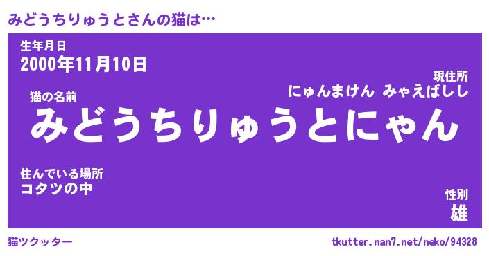 | 男性向けラノベタイトル風あだ名 | 『みどうちりゅうとの憂鬱』 |