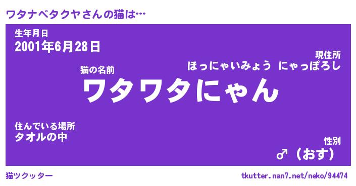 | ポケモン風あだ名 | 『ワタチュウ』『ワタナダネ』 |