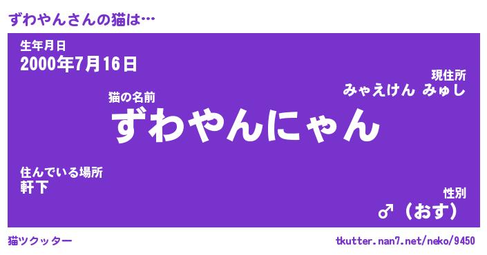 | ポケモン風あだ名 | 『ズワチュウ』『ズワヤダネ』 |
