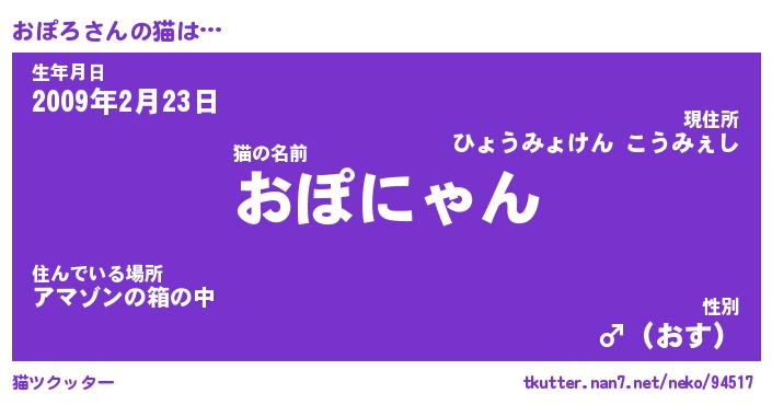 | ポケモン風あだ名 | 『オポチュウ』『オポロダネ』 |