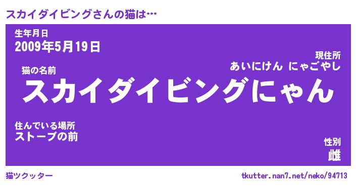 | 男性向けラノベタイトル風あだ名 | 『スカイダイビングの憂鬱』 |