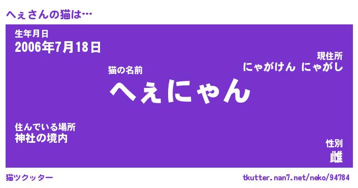 | ポケモン風あだ名 | 『ヘェチュウ』『ヘェダネ』『ヒヘェ』 |