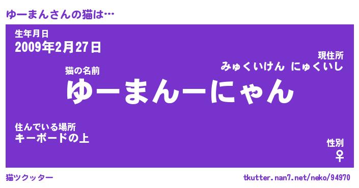 | ポケモン風あだ名 | 『ユーチュウ』『ユーマダネ』 |