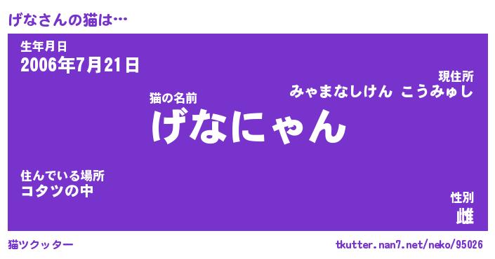 | ヘコむあだ名 | 『げなにゅー』『なまこ酢』『げなを』 |