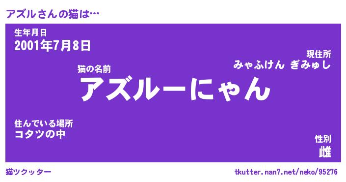 | ポケモン風あだ名 | 『アズチュウ』『アズルダネ』 |