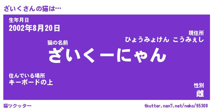 | ポケモン風あだ名 | 『ザイチュウ』『ザイクダネ』 |
