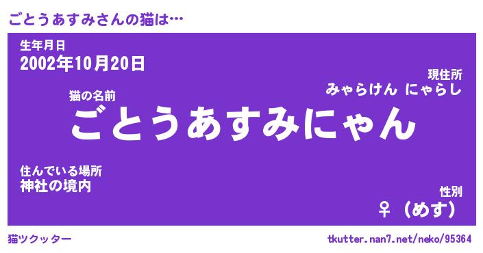 | 女子向けラノベタイトル風あだ名 | 『(仮)ごとうあすみのやんごとなき事情』 |