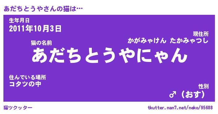 | 肩書あだ名 | 『あだちとうや御曹司』 |