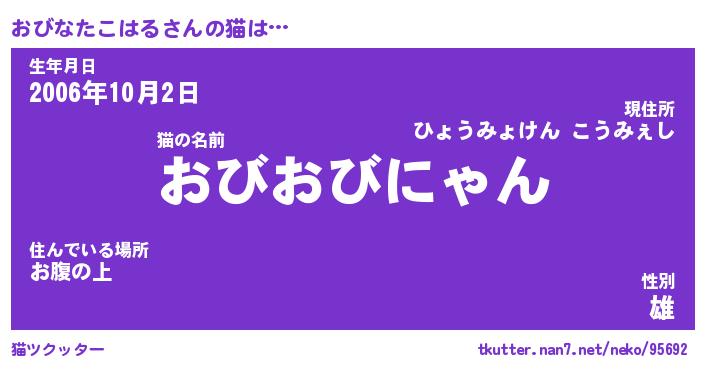 | ポケモン風あだ名 | 『オビチュウ』『オビナダネ』 |