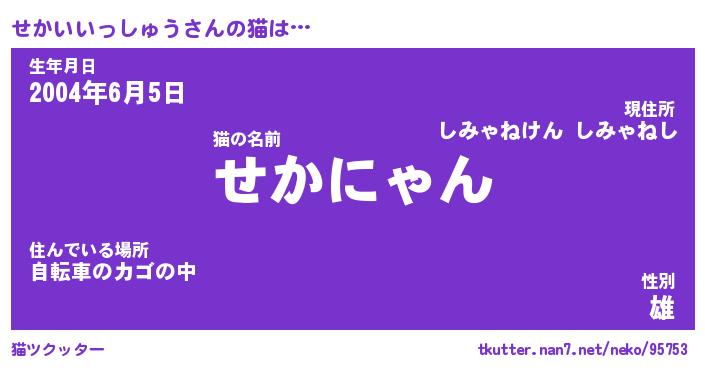 | ポケモン風あだ名 | 『セカチュウ』『セカイダネ』 |