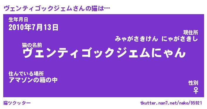 | 男性向けラノベタイトル風あだ名 | 『ヴェンティゴックジェムの憂鬱』 |
