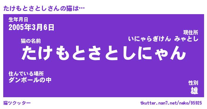 | 2回繰り返すあだ名 | 『たけたけ』『たたけけ』『ぬれぬれ』 |