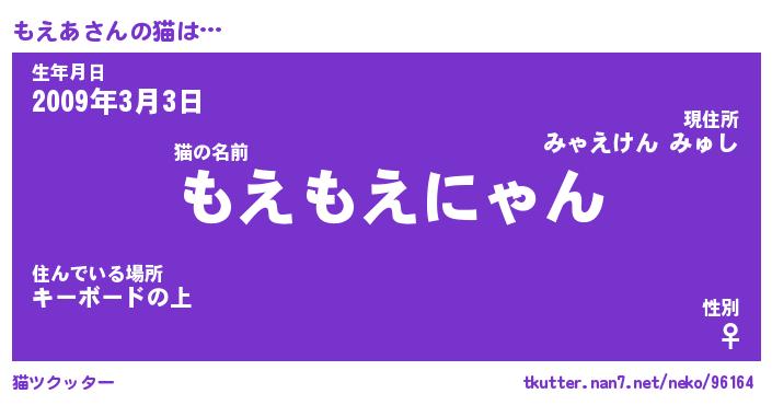 | 意味不明あだ名 | 『ペロリンもえあ』『もえあフォーエバー』 |