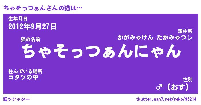 | 男性向けラノベタイトル風あだ名 | 『ちゃそっつぁんの憂鬱』 |