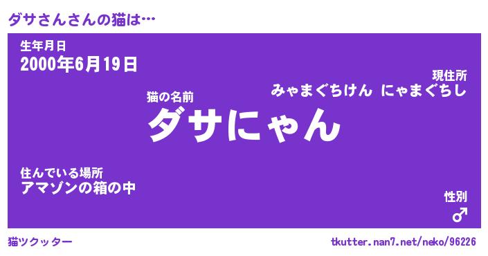 | ファンタジー風あだ名 | 『ダサフェル』『エターナルダササンー』 |
