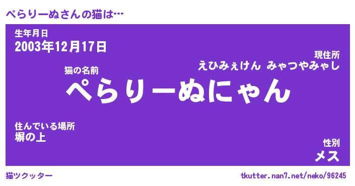| ポケモン風あだ名 | 『ペラチュウ』『ペラリダネ』 |