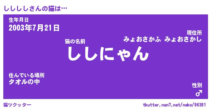| ポケモン風あだ名 | 『シシチュウ』『シシシダネ』 |