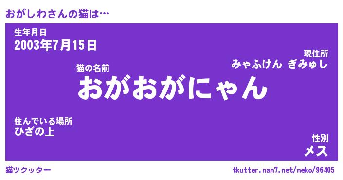 | ポケモン風あだ名 | 『オガチュウ』『オガシダネ』 |