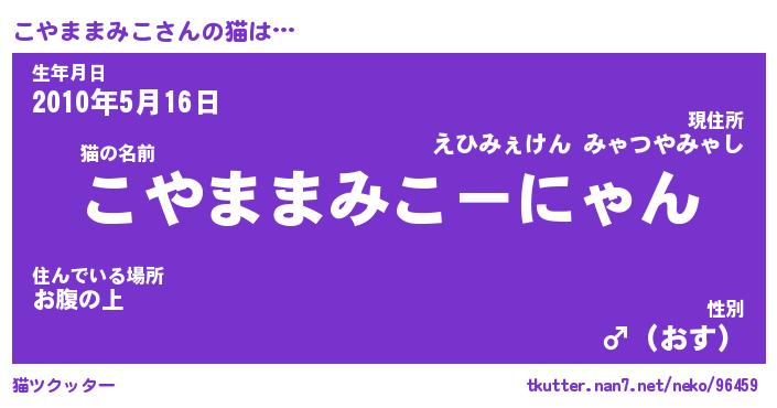| ツイッター | こやままみこさんのツイッターID『fukuyoka_nyan』 |