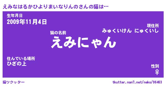 | ツイッター | えみなはるかひよりまいなりんのさんのツイッターID『tsukushi_nyan』 |