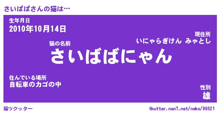 | 意味不明あだ名 | 『ペロリンさいばば』『永久保存さいばば』 |