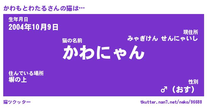 | ポケモン風あだ名 | 『カワチュウ』『カワモダネ』 |