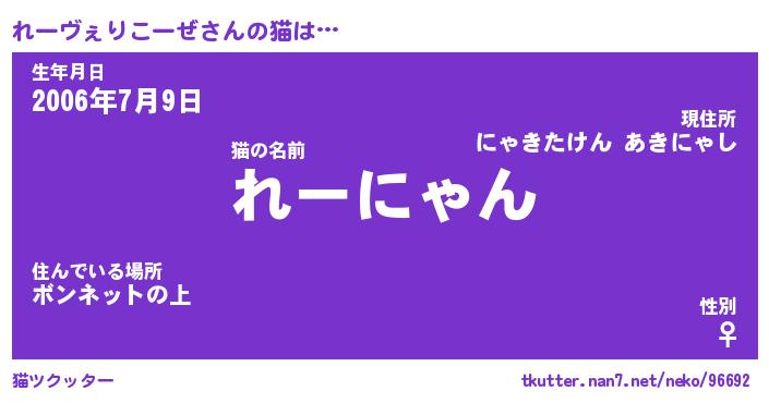 | ヘコむあだ名 | 『れーにゅー』『豆乳』『れーっ子』 |