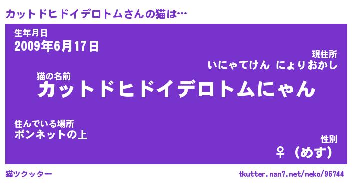 | 女子向けラノベタイトル風あだ名 | 『(仮)カットドヒドイデロトムのやんごとなき事情』 |