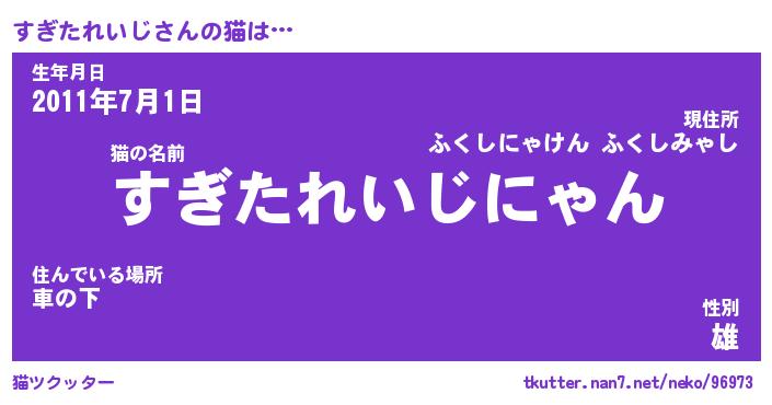 | 男性向けラノベタイトル風あだ名 | 『すぎたれいじの憂鬱』 |