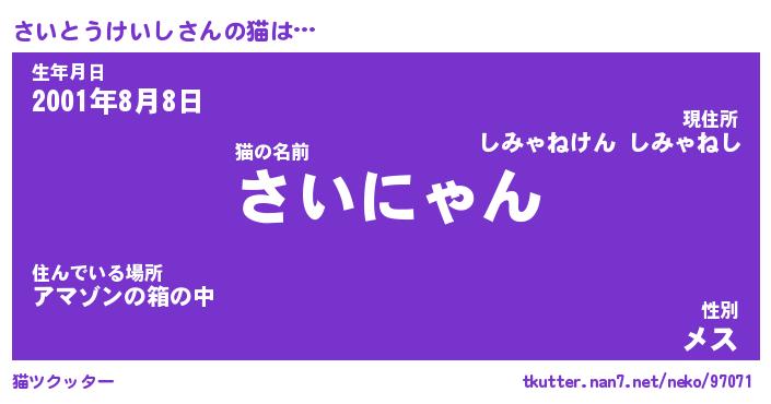 | 生年月日? …「くろねこ」 | 8月01日 10:16 |