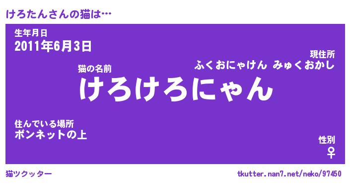 | 欧米人風あだ名 | 『マイケルけろたん』『ウサインけろたん』 |
