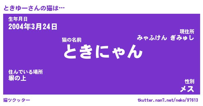 | 意味不明あだ名 | 『ペロリンときゆー』『永久保存ときゆー』 |