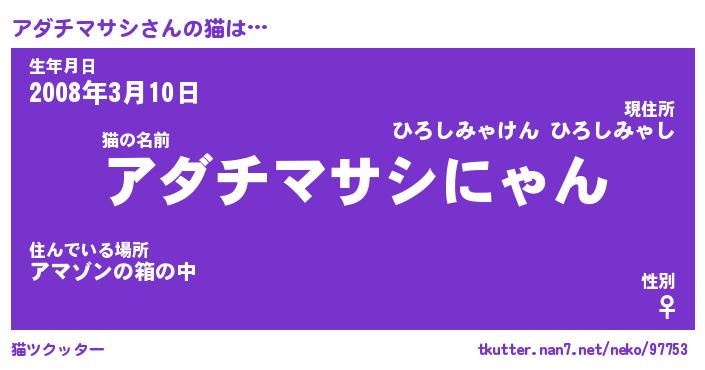 | 肩書あだ名 | 『アダチマサシ御曹司』 |
