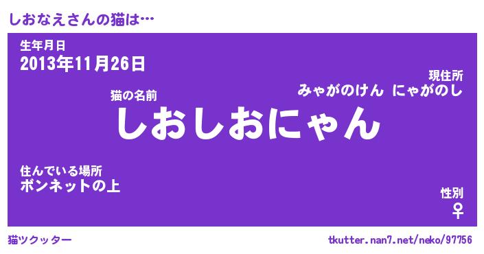 | 意味不明あだ名 | 『ペロリンしおなえ』『永久保存しおなえ』 |