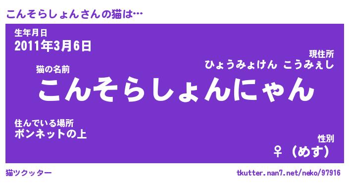 | 男性向けラノベタイトル風あだ名 | 『こんそらしょんの憂鬱』 |