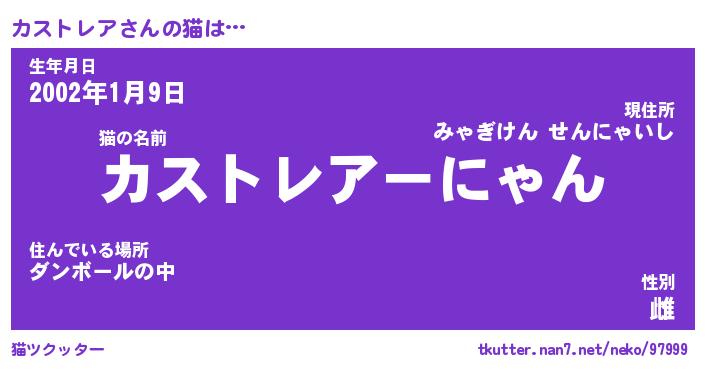 | 自動車の名前っぽいあだ名 | 『カスティマ』『カクア』『ヴィッカ』 |